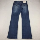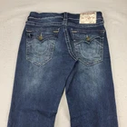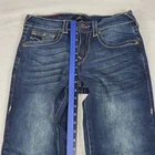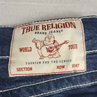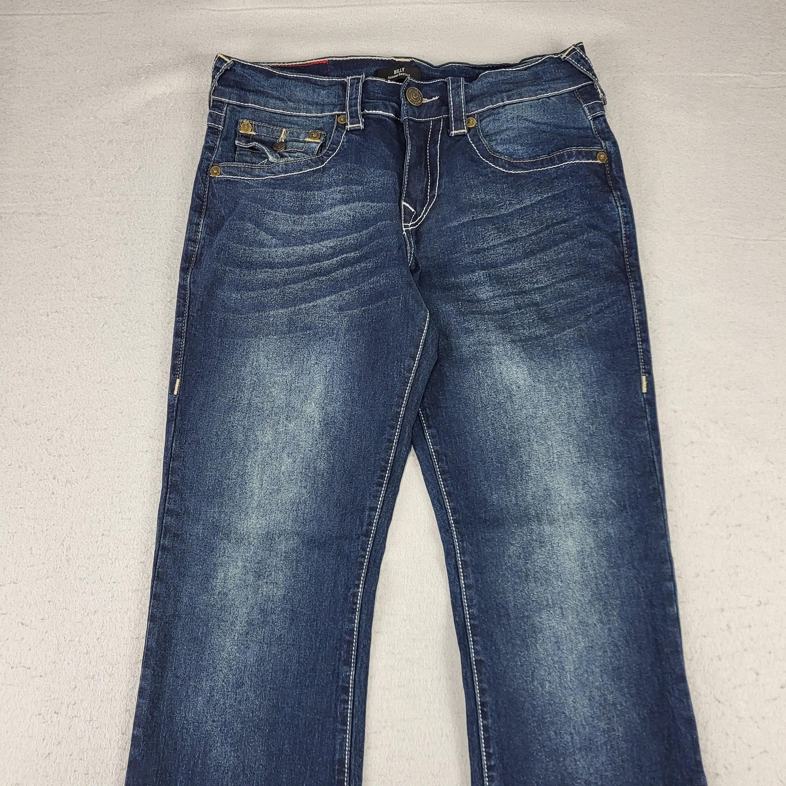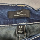 Brand: True Religion Brand Jeans Style: Billy Relaxed Bootcut men's jeans with signature flap pockets and contrast stitching. Color: Medium blue wash with whiskering and fading on thighs and seat. Materials: 99% cotton, 1% spandex (exclusive of decoration); stretch denim for added comfort. Country of manufacture: Made in China. Size on tag: 29. Style/Model details on inner tag: BILLY FLAP SN TRBJ MENS; code 5080-00; additional tag code 107543. Features: Five-pocket design with button-flap coin pocket and back pockets, embroidered horseshoe back pockets, zip fly with button closure, belt loops, relaxed fit through the seat and thigh, bootcut leg opening, contrast stitching. Condition note: See close-up photos for hem wear and overall fading. Disclaimer: Different sources of lighting can change your perspective on the color of the clothing Disclaimer: All clothing is measured in a resting position lying flat. All items have been cleaned per eBay standards & policies. We ship items out daily via USPS Ground Advantage or Priority Mail with a tracking number for confirmation, so expect a quick delivery. We also offer free 30-day returns!! Please feel free to reach out anytime with any questions you may have. Thank you for shopping at Curiosity Corner RVA!!! Follow my store for more great discounts seller:kevredfor_0