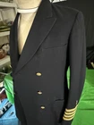 Vintage U.S. Navy Captain’s Dress Uniform – Double-Breasted Jacket & Pants – Rogers Peet Co. Description: This vintage U.S. Navy officer’s uniform includes a double-breasted dress jacket and matching pants, tailored by the esteemed Rogers Peet Company of New York and Boston. The jacket features four gold sleeve stripes and a star, indicating the rank of Captain (O-6), as well as gold eagle buttons. A rare and collectible piece, perfect for military collectors, historical reenactments, or classic menswear enthusiasts. Details: • Era: Likely mid-20th century • Brand: Rogers Peet Company • Rank: Captain (O-6) – Four gold sleeve stripes with a star • Jacket Features: • Double-breasted design • Gold U.S. Navy eagle buttons • Peak lapels • Fully lined interior • Name tag sewn inside (partially faded) • Pants: Matching navy blue trousers included Condition: • Pre-owned vintage condition with some expected wear (please review photos). • Fabric is well-preserved, but minor signs of aging may be present. Shipping & Returns: • Ships within 1-2 business days • No returns, so please review all photos and ask any questions before purchasing. ⚓ A stunning and historic U.S. Navy officer’s uniform, perfect for collectors or display! ⚓