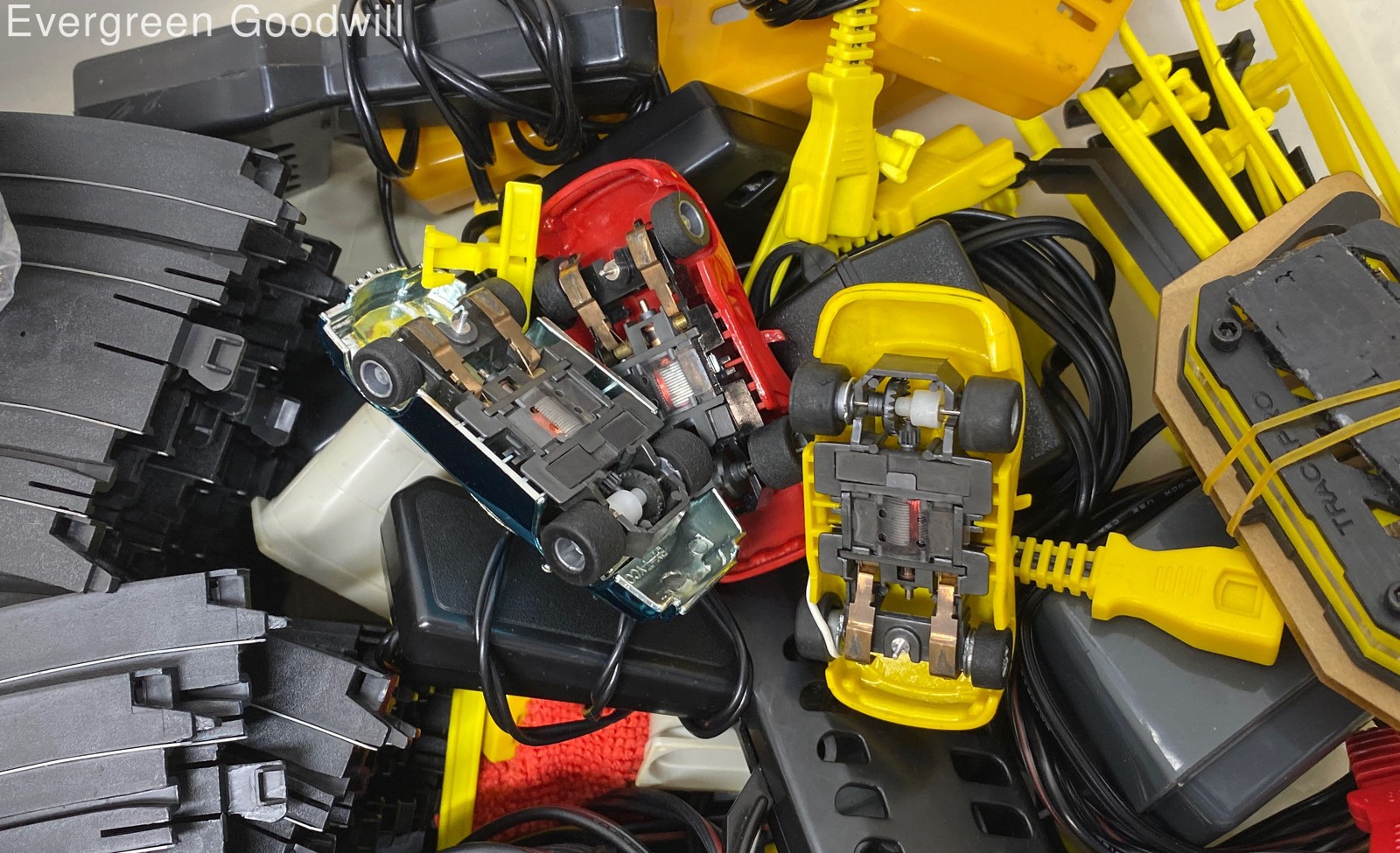 Tyco Mixed Lot Slot Cars, Tracks & Parts Brand: Tyco Type: Mixed Lot Slot Cars, Tracks & Parts Condition: Good - shows some sign of wear Approximate Measurements (inches): 22.5L x 16W x 6H Additional Details: **we don't inventory lots ; open box maybe incomplete* Evergreen Goodwill helps people get jobs across Northwest Washington by offering high-quality free job training, education and job placement. We empower individuals to overcome barriers to working by providing comprehensive support and connecting them with life-changing job opportunities, ensuring they are career-ready and can support themselves and their families. ***Disclaimer*** All items were donated to Evergreen Goodwill of Northwest Washington with no history or provenance. The auction is for all items pictured. Items may need servicing and/or benefit from a cleaning upon arrival. Please see photos for additional details and feel free to ask questions. PAYMENTS Please note that your entire order will be canceled by eBay if the oldest item exceeds 7 days without payment. Once an order is canceled, we are unable to re-invoice and the item will be relisted. For a combined shipping invoice, please send us one request within 3 days of winning the first item to avoid cancelation of your entire order. Once a combined invoice has been sent, we are unable to add additional items to the invoice. SHIPPING Local pickup only available to items listed as Local Pickup at this time. Interntaional shipping is not available at this time. We offer combined shipping as long as items will ship safely together. Auctions must end within 5 days of each other to be eligible for combined shipping. Please hold off on payment until all auctions have ended then proceed to checkout. Please do not pay for any items individually if you wish to have them combined - they must be paid at the same time. Items listed for flat-rate shipping are not eligible for combined shipping. PO Box addresses will require USPS shipments as FedEx Ground will not deliver. If FedEx is selected we may need to invoice for additional shipping costs.