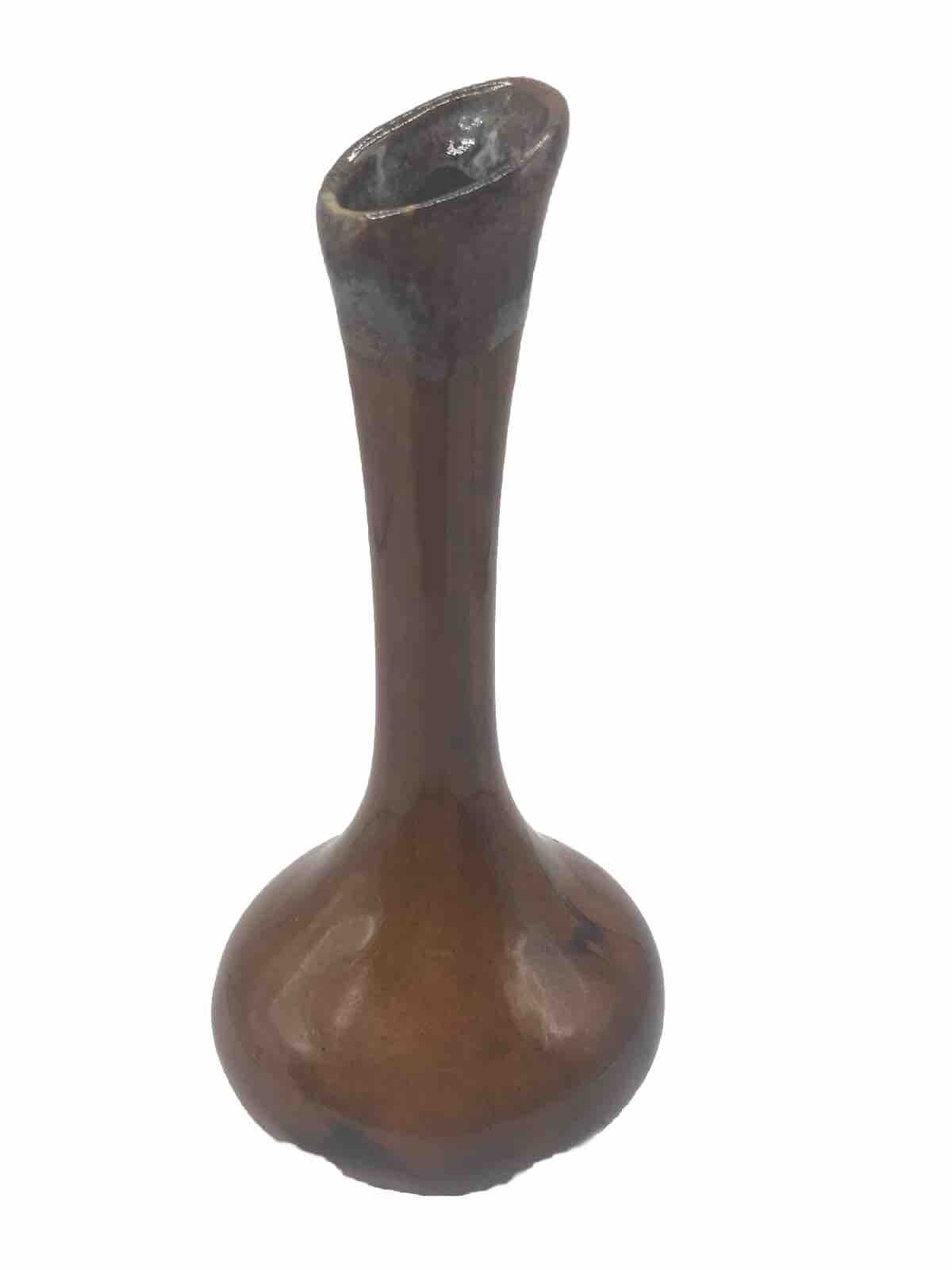 VTG Van Briggle Colorado Sprgs Bud Base Gloss Browns w/ Turquoise Drip Overflow. Condition is Used. Shipped with USPS Ground Advantage.