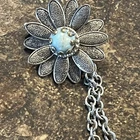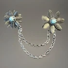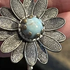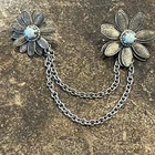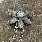 VTG Victorian Revival Silver-tone Chatelaine Faux Turquoise Pin Brooch Estate