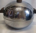 VTG West Bend Penguin Chrome Hot Cold Server Ice Bucket Lid MCM Wood Handles