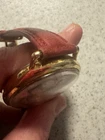 This vintage Whimsical Watches teapot and cup set is a unique addition to any watch collection. The silver case color and pink band material make it a stylish accessory for women. It features a Japanese quartz movement, buckle closure, and a round watch shape. The watch is water-resistant, has acrylic crystal, and a seconds hand, along with a 12-hour dial. The push/pull crown allows for easy adjustment, and it comes with features like a food & drink theme, handmade design, and no papers or service records. This casual wristwatch is perfect for everyday wear and is a must-have for watch enthusiasts.