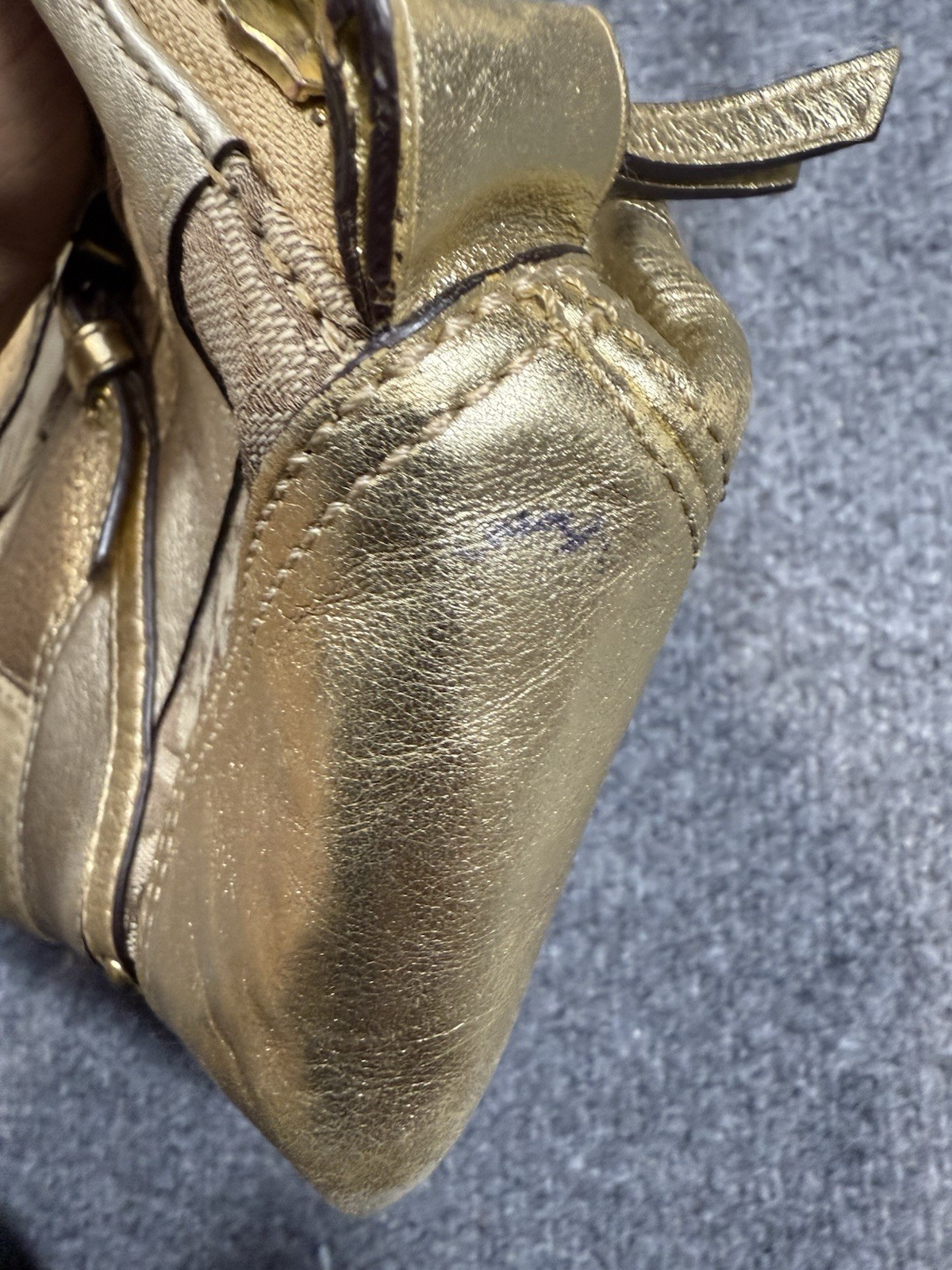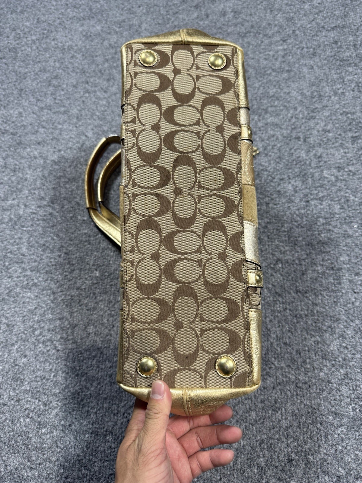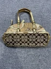 VTG Y2K COACH Canvas Patchwork Turn-Lock Tote Bag Gold purple Charm Used, NEEDS CLEANING/TREATMENT ALL OVER AND INSIDE BAG SOLD AS IS