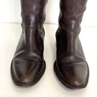 Espresso Chocolate Brown Expedition Vintage 90s Y2K Leather Eddie Bauer Safari Riding Equestrian High Definition Western Rodeo Cowgirl Boots Butter soft leather Pointed Toe Zip closure Made in Brazil Sz 8M Heel 1 Shaft 13 Circumference 15 Good condition with some wear to soles pls see all pics