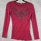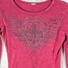 Classic 90s y2k piece in a ribbed cotton material. Has a graphic print on the front and back with embellishment jewels. In good pre owned condition, some of the gems have come off. The size and materials tag have been removed. Measurements provided in the photos, shirt does have some stretch, compare with your own measurements for best fit.