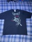 This is a vintage Y2K Hard Rock Cafe Cancun T-shirt in size XXL for men but fits like an XL. The shirt features a graphic print of a guitar and eagle on a black background, with a crew neck and short sleeves. The design includes a unique cut neck style, adding to its appeal. This pre-owned shirt is in good condition, making it a stylish and collectible piece for fans of Hard Rock Cafe merchandise.