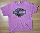 Experience the iconic style of Harley-Davidson with this vibrant pink graphic tee. Perfect for motorcycle enthusiasts and casual wear alike, this t-shirt features a classic Harley-Davidson logo on the front and an eye-catching design on the back showcasing Bowling Green, Kentucky. Crafted for comfort, it retains its softness and worn-in appeal. Key features include: - Made by Hanes for quality and durability - Eye-catching pink color with bold graphics - Classic crew neckline - Short sleeves for casual comfort - Great for layering or standalone style