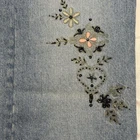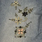 These VTG Y2K Venezia Women's Jeans in size 18 feature a heavily beaded straight wide leg design, perfect for a festival or hippie-inspired look. Made from a cotton blend denim fabric in a medium wash, these high-rise jeans have a zip and button closure, 5-pocket design, and stretch for added comfort. The blue color and vintage style add a touch of 90s nostalgia, making them a versatile and stylish addition to any wardrobe for the summer, fall, or spring seasons.