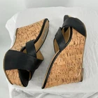 Vintage y2k Women's Black Leather Upper Steve Madden P-Britt Strappy Cork Wedge Sandals Sz 6.5M Size: USA Women's 6.5M In good condition. Cross listed on several platforms. Feel free to ask any questions!