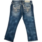 Vintage y2k women's Rock Revival Alexia Capris Cropped blue medium dark wash denim jeans -pink, orange, embroidered, cross, floral, distressed Waist: 30" Inseam: 21" Hip: 35" Rise: 8" Leg Opening: 7" Tag Size: 27 *the waist got stretched out a bit, but the hips didn't, so please keep that in mind. It would be best to stay true to your size and wear a belt, since the hips didn't stretch too. Item is in good used condition. Look at photos to see the condition. All, if any, flaws have been pictured. See the last photo for measurements. The waist and hip measurements are measured flat and then multiplied by 2 to get the full measurement around. Please know which measurements fit you prior to purchasing, and don’t just rely on the size tag. Feel free to ask any questions! ***Item is cross posted on several platforms***