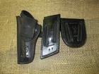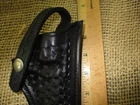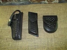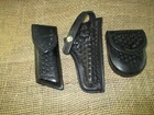 THIS IS A TRULY SOLID ALL THE WAY 3 PIECES of SAFARILAND LEATHER BASKETWEAVE PATTERN,THE SET CONTAINS,MAGAZINE HOLDER#71@BELT SLIDE,HANDCUFF POUCH#90@BELT SLIDE&HOLSTER#25@BELT SLIDE,ALL PIECES ARE IN EXCELLENT CONDITION,ALL PIECES CLOSE VERY TIGHT&SECURE,ZOOM IN FOR THE FULLY DETAILED PHOTOS&PLEASE READ ABOVE&BELOW FULLY DETAILED DESCRIPTIONS OF THIS 3pcs SET,BEFORE BUYING,MANY,MANY MORE YEARS OF USE,''THANKS FOR LOOKING''