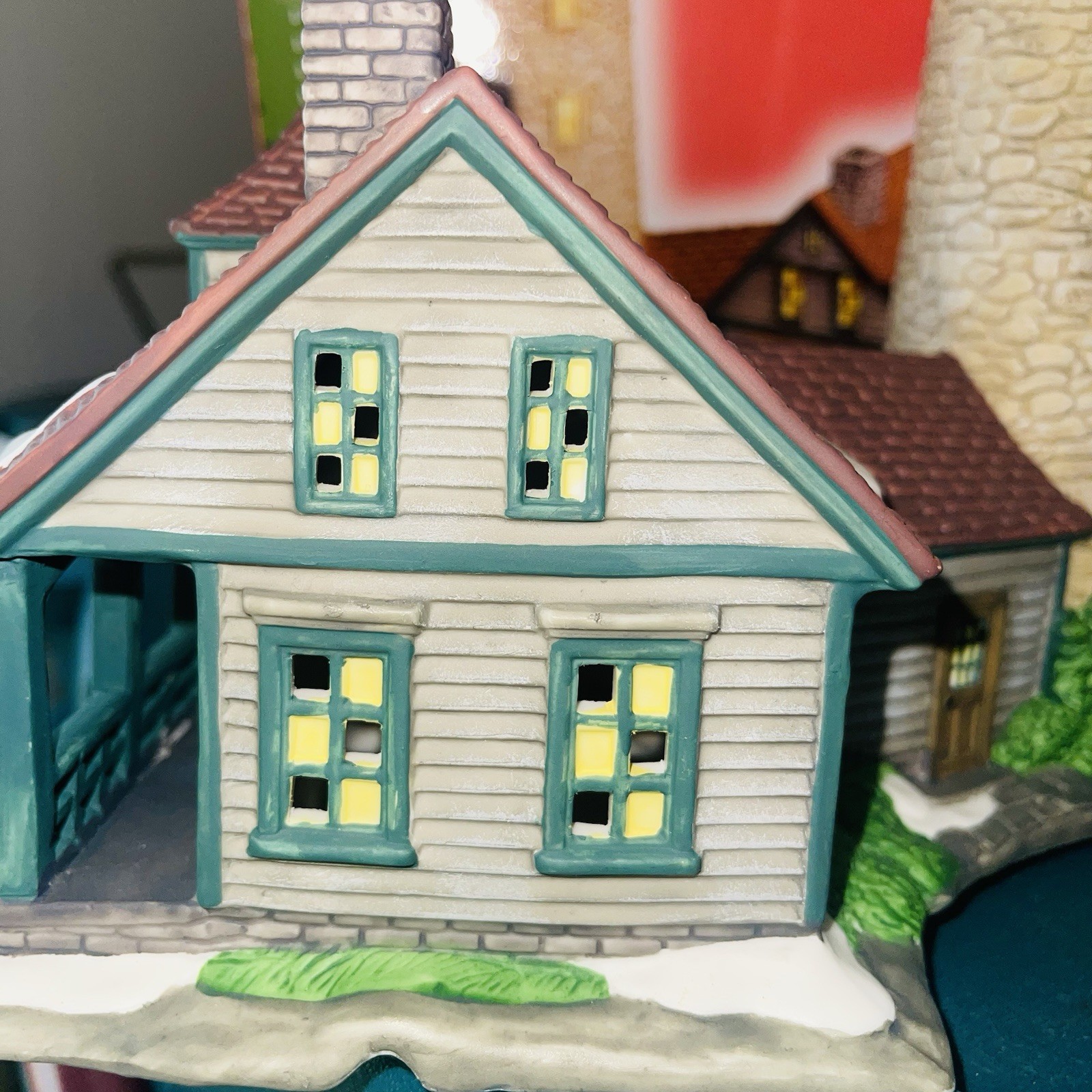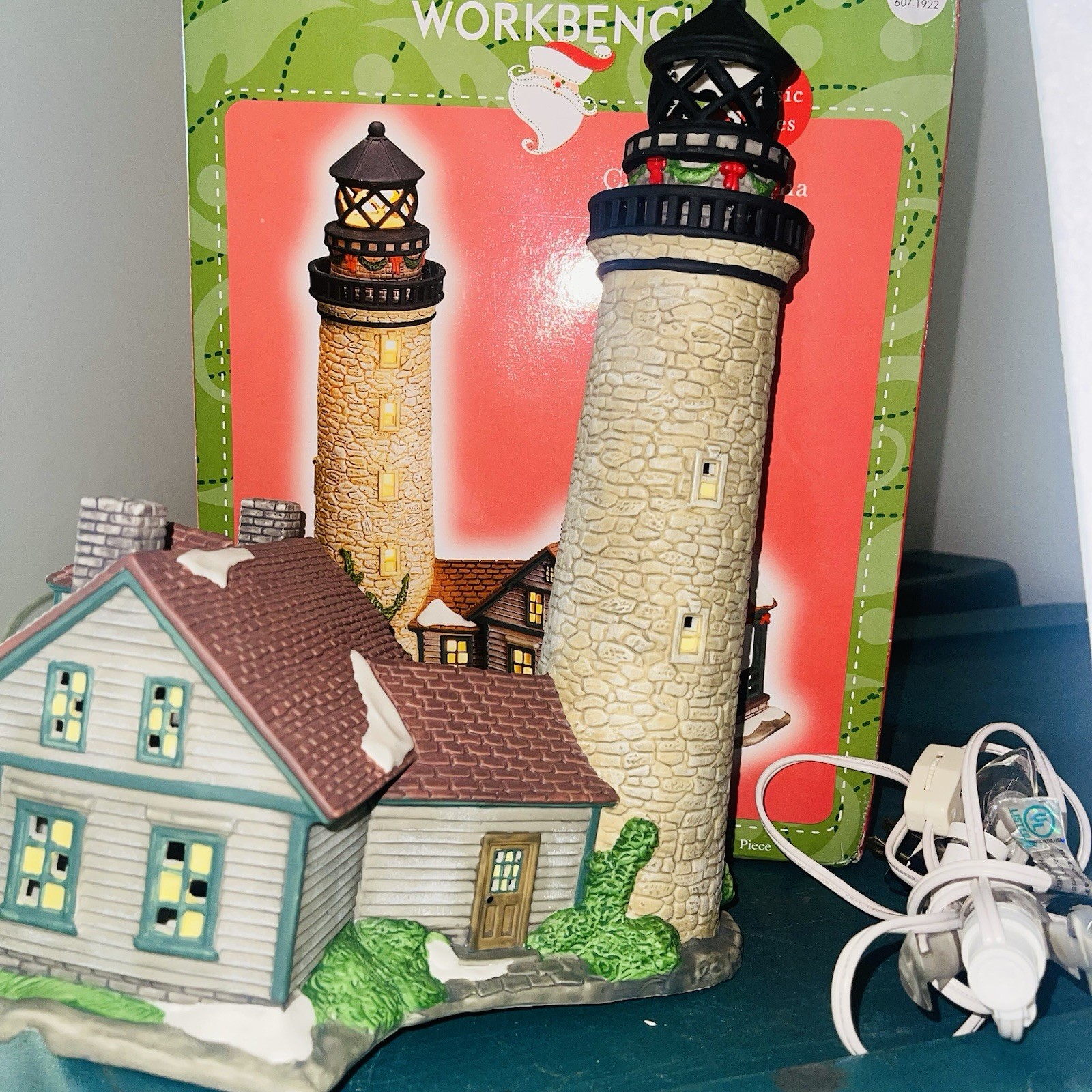 Elevate your festive display with the Santa's Workbench Collection Victorian Series' Cape Christiana Lighthouse. A charming addition to any Christmas village setup, this medium-sized porcelain piece boasts intricate detailing and a cozy nautical theme, complete with a lighthouse design that captures the spirit of the season. Measuring at 11.5 inches in height, 8.25 inches in length, and 4 inches in width, this asymmetrical ornament fits seamlessly in any room, creating a warm and inviting atmosphere. Crafted in 2000, this retired collectible comes packaged in a box and foam for safekeeping, making it a timeless treasure for holiday enthusiasts and collectors alike.