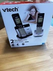 This is a VTech CS5119-2 cordless phone system that includes two handsets and caller ID. The phones use DECT 6.0 frequency and come in a sleek black color with a trimline style. The system features wireless capability and a speakerphone for added convenience during calls. In addition, each handset has its own phone line, making it perfect for households with multiple people. The VTech CS5119-2 is brand new and comes in an open box. Get this high-quality phone system for your home or office today! Box is open and has damage to the box. All parts are in box and new.