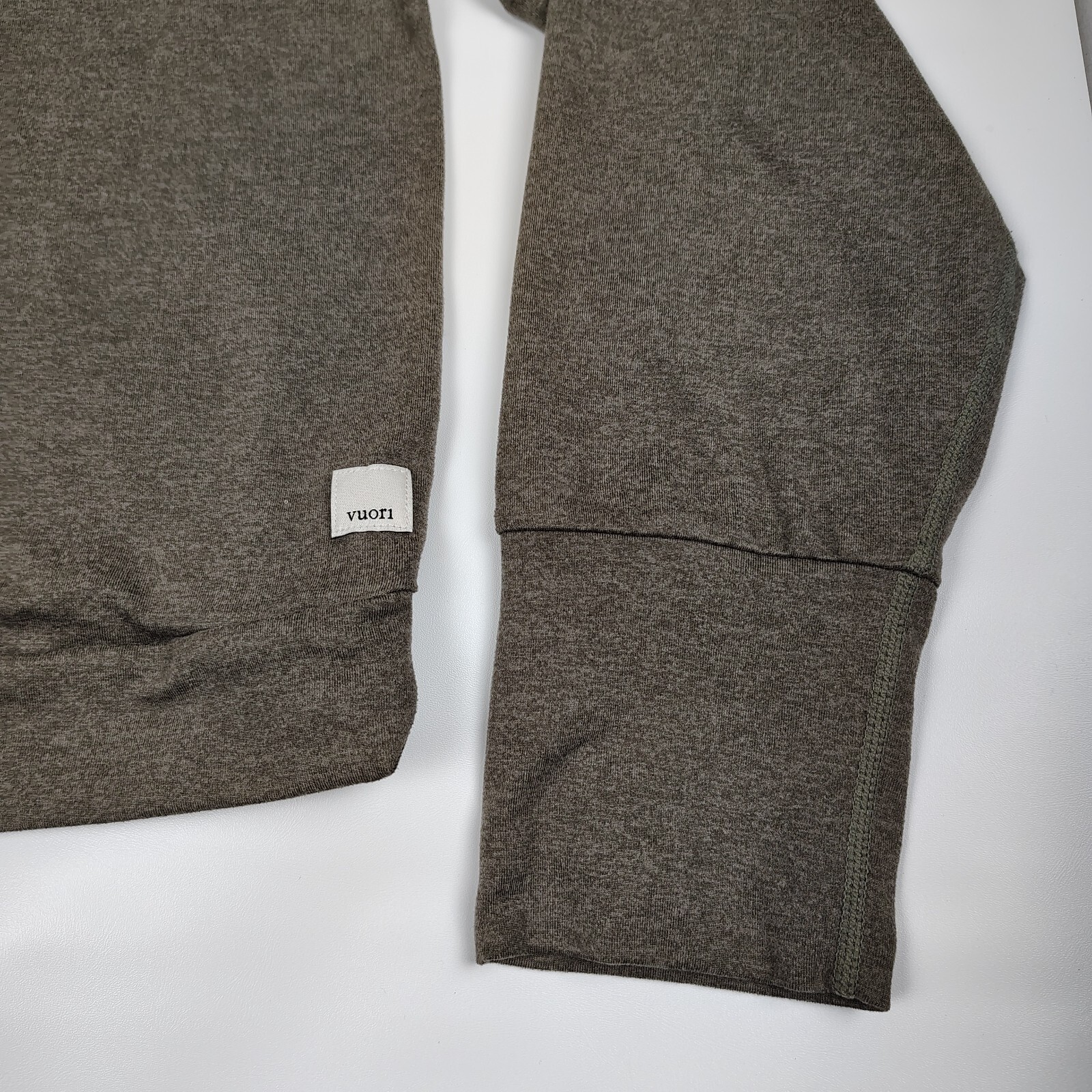 VUORI Halo Essential Hoodie Pullover VW226 Heather Green (Olive green, I dont know official color name) Womens Size XL In Very Good Pre-Owned Condition Measurements in flat Under Arm to Under arm:21.5 inches Shoulder to Hem:21 inches Sleeve:25 inches Please check the measurements & conditions in photos and I recommend you to compare with your favorite hoodie! Pre-owned clothing may have a variance in size and fit. If you have any questions, please let me know. Smoke Free, Pet Free Home Visit my store for new listings! Thank you for looking!