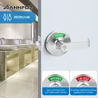 Name:Vacant or In-Use Bathroom Indicator Privacy Handle Lock,Vacant Occupied Bathroom Lock with Large Indicator Sign,ANSI Grade 2 Commercial Door Handle,for Public Restrooms Restaurant,Office. Model: Public Bathroom Privacy Indicator Vacant Restroom Door Handle Lever,ADA Compliant Satin Nickel Lever with Thumbturn Lock. 1.EXTRA-LARGE ROSETTE & OCCUPIED WINDOW: The Vacant Occupied Bathroom Lock features a 90mm (3.54") Rosette, an Extra-Large Rosette with an Extra-Large VACANT or IN-USE Indicator, visible from over 50 feet away. Perfect for social distancing, avoiding disturbance. 2.EYE-CATCHING INDICATOR & ENJOY YOUR PRECIOUS PRIVACY TIMES: IN-USE (red color) indicates "I AM HERE". VACANT (green color) indicates "FREE TO GO". Avoids long queues, eliminates the need for constant knocking, and prevents unauthorized lever jiggling from outside. 3.HEAVY DUTY, BUILT DURABLE, BUT NOT UNWIELDY: Meeting Commercial Grade ANSI Grade 2 Standards, the privacy indicator lever lock is crafted from stainless steel escutcheon rosette. Its unique mechanism design ensures over 300,000 opening and closing cycles. 4.APPLICABLE BACKSET: The latch is adjustable, accommodating backsets ranging from 2-3/8” (60 mm) to 2-3/4” (70 mm). 5.EMERGENCY ACCESS: In case of an emergency, a flat object like a coin can be used to turn the button from outside, unlocking the lever. Rotating the inside thumb-knob changes the outside indicator to IN-USE when locked or VACANT when unlocked. 6.REVERSIBLE HANDLE & ROSETTE: The Indicator lock can be easily switched between left-handed and right-handed doors. Simply rotate and pull out the rosette to adjust the indicator accordingly. 7.EASY INSTALLATION: The bathroom indicator handle lock fits most standard doors with thicknesses ranging from 1-3/16” (35 mm) to 2” (50 mm). It can be easily installed on most existing standard doors without the need for extra drilling or a locksmith. 8.EASY TO MAINTAINThe internal and external surfaces of the product are made of stainless steel, resistant to dirt, grease, and moisture. Cleaning is effortless. 9.WIDE RANGE OF USE: The Privacy indicator lock is designed for doors in dressing rooms, public washrooms, conference rooms, nursing mothers' rooms, as well as in office buildings, airports, stations, restaurants, schools, hospitals, workshops, gas stations, and more. 10.UPGRADATION 2.0 FOR YOUR SATISFACTION: The Vacant Occupied Bathroom Lock 2.0 aims to satisfy everyone.