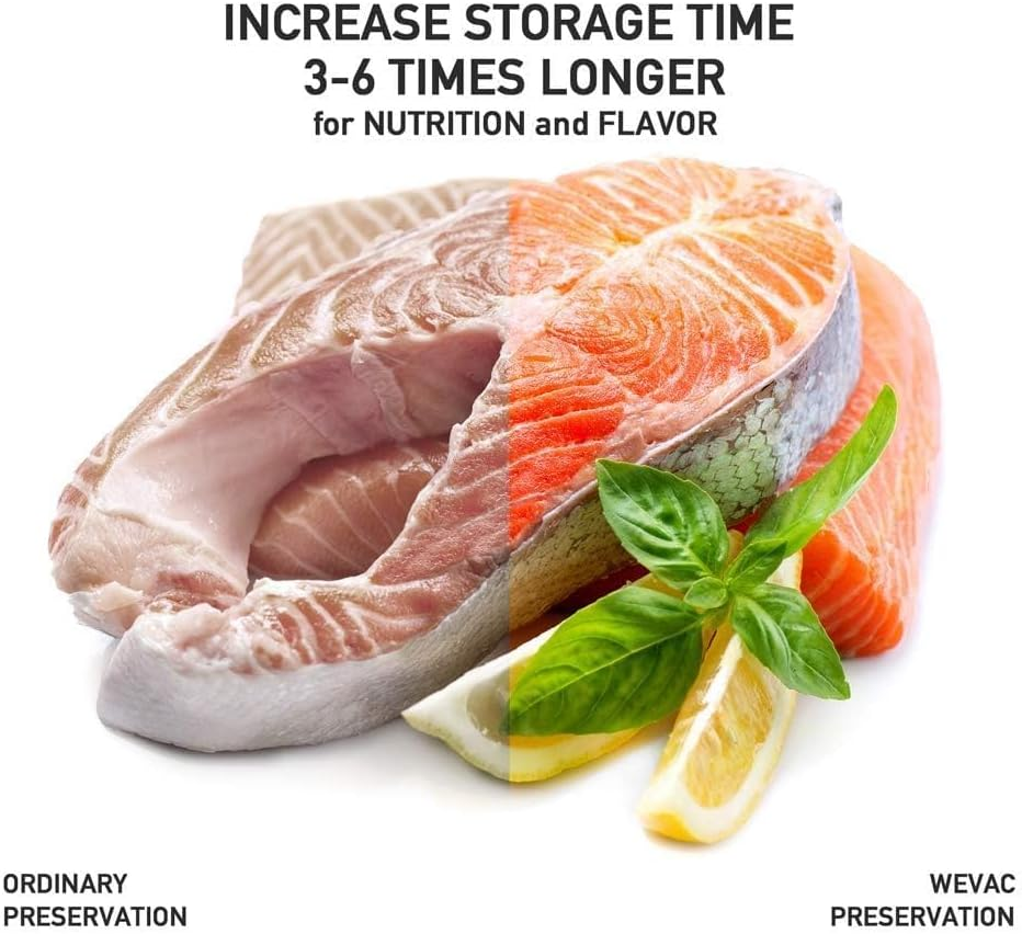 HEAVY DUTY AND PUNCTURE PREVENTION - 8x12 pre-cut Quart bags with embossed channels increase suction, keep fresh without freezer burn or dehydration INCREASE STORAGE TIME FOR NUTRITION AND FLAVOR - 3-6 times longer food shelf life, lock freshness, flavor and nutrition inside WORKS WITH ALL VACUUM SEALERS - work with all suction vac heat sealer, such as Food Saver, Seal a meal, Nesco, Weston, Cabela’s, Ziploc etc. BPA FREE - Perfect for food storage, freeze dried meal, sous vide, gardening, tea leaves, documents and electronics QUALITY GUARANTEE FROM WEVAC - We stand behind our products and implement “no questions return policy” with no hassle Wevac Vacuum Sealer Bags 100 Quart 8x12 Inch for Food Saver, Seal a Meal, Weston. Commercial Grade, BPA Free, Heavy Duty, Great for vac storage, Meal Prep or Sous Vide