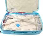 Description: SET of 15 pieces of VACUUM BAGS 50x70cm; 60x80cm; 70x100cm SAVING SPACE - just pack your things into a bag. Vacuum bag After sucking out the air with a regular vacuum cleaner, it reduces its volume by up to 80% . It allows you to save a lot of space. VERY GOOD SECURITY - stored items are perfectly protected against dust, dirt, water, moisture and moths. Everything you put in the bag can be stored in the basement, attic or garage the clothes will not get damaged or smell bad . UNIVERSAL USE - perfect when moving, but also ideal for storing seasonal clothes or bedding. It will work great when traveling when there is little space in the suitcase and you need a lot of clothes. REUSABLE - the bags can be used many times. They will not lose their properties after use. After taking them out of the bag, the clothes are still fresh and fragrant! SPECIFICATIONS – material: PA, others: HDPE + silicone; color: transparent / blue; dimensions: (width/length) 50x70cm – 5 pcs; (width/length) 60x80cm – 5 pcs; (width/length) 70x100cm - 5 pcs; weight: 1,242kg; weight in packaging 1,442 kg. SPECIFICATION: material: PA, others: HDPE + silicone color: transparent / blue number of bags: 15 pieces in 3 sizes (width/length) 50x70cm – 5 pcs (width/length) 60x80cm – 5 pcs (width/length) 70x100cm - 5 pcs weight: 1,242kg weight in packaging 1,442 kg INCLUDED : 15 bags in 3 sizes 15 zippers to close the bags A set of 15 vacuum bags is reusable. The stored items are perfectly protected against dust, dirt, water, moisture and moths. Clothes stored without access to air stay fresh longer and look like new. To suck out the air, just use a regular vacuum cleaner. The bags will allow you to save a lot of space. Photo: