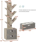 Vagusicc 6 Tier Tree Bookshelf, Modern Floor Standing Bookcase 6 Tier, Greige Product Details Room Type: Living Room Number of Shelves: 8 Special Feature: Space Saving, Waterproof, Adjustable Product Dimensions: 7.9"D x 14.9"W x 47.5"H Style: Modern Finish Type: Glossy Brand: Vagusicc Product Care Instructions: Wipe with Damp Cloth Size: 6 Tier Assembly Required: Yes Recommended Uses For Product: Whether placed in the living room, bedroom, bookroom, or home office, office furniture for small spaces, this small bookcase can blend in with most home decor styles and brings a touch of sophistication and uniqueness to any space. Number of Items: 1 Manufacturer: Vagusicc Included Components: 2 open storage cabinets, 2 hand-woven wicker storage baskets Model Name: Modern Tree Bookshelf Furniture Finish: Wood Installation Type: Assembly Required Back Style: Closed Back Specific Uses For Product: Books Unit Count: 1.0 Count Product Name: bookshelf Item Weight: 20 pounds MaterialMounting Type: WoodFreestanding Shelf TypeShape: Tiered ShelfTree 【Unique Bookshelf Tree Design】The tree bookshelf combine modern design with vintage timeless colors. Inspired by nature, the bookshelf is finished with a tree-branch structure, and it presents a unique elegance with a warm atmosphere. Whether placed in the living room, bedroom, bookroom, or home office, office furniture for small spaces, this small bookcase can blend in with most home decor styles and brings a touch of sophistication and uniqueness to any space. 【Space Saving & Large Capacity】Our cute tree bookshelves dimensions: 47.5"H x 14.9" W x 7.9" D. The tiered bookshelf is very compact and comes with 2 open storage cabinets, 2 hand-woven wicker storage baskets, and 6 open shelves, which is perfect for displaying your books, magazines, manga, decorations, novels, speakers and more, each storage area can hold 5–10 books. With its open design and small footprint, this narrow bookshelf is easy to move and organize, making it ideal for small spaces and corners. 【Sturdy & Durable】The small tree book shelf is made of high-quality board material, which has a smooth and high gloss finish, tough texture, and a firm structure. Our tree geometric space saving bookcase with a sturdy base and reliable backboard offers robust stability and has a strong load-bearing capacity. For added stability and safety, we offer anti-tip kits to secure the bookshelf to the wall and prevent the shelf from dumping, especially for families with children and pets. 【Easy Assembly】The modern slanted bookshelf product package includes easy-to-understand instructions, assembly tools, and numbered parts, allowing you to easily and quickly assemble this tall bookshelf. Our wood bookshelf has a waterproof surface that can be easily cleaned with just a wet rag. 【Professional After-sales Service】We provide 1-year after-sales service for this vertical bookshelf organizer. If you have any questions or suggestions about our wood bookshelf during installation and use, please reach out to our dedicated customer service team, they are available at any time to serve you. ⚠️Please pay attention that the hole position of our bookshelf is only valid on one side, please check the instruction manual carefully before assembling. Woven basket dimensions: 6"H x 12.5" W x 6" D. It's suitable for storing your remotes, keychain, earphone, office essentials, small items in daily life, and more. If you encounter any problems, we are always ready to help you.
