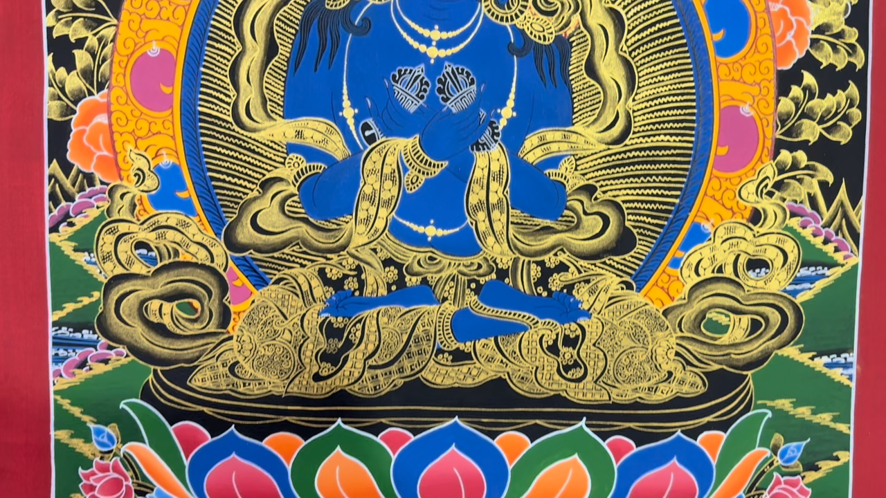 Silk Brocade MountedVajradhara Handmade Thangka Painting