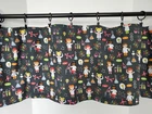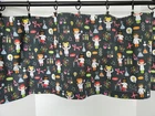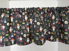 Valance made from light weight cotton fabric in a school science theme.The background is black with a graph paper look. The valance measures 42 inches wide x 14 inches long The valance has a 2.5 inch rod pocket and can be used straight, gathered or with curtain ring clips. Ring clips are not included. If you are gathering, the valance will cover a window up to 28 inches wide. Most windows need two valances. The fabric is lightweight cotton. Please order all that you need at the same time so I can match the pattern and dye lot for you.