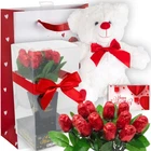 You will receive 4 items total; 1 Teddy bear 11 inches tall, 1 DOZEN Milk Chocolate Flower Bouquet Roses, 1 Valentine-themed GIFT BAG, and 1 Valentine's day Tag, small size CARD. The dozen flower roses are made from the finest BELGIAN Chocolate, they are shaped into flowers and then individually wrapped to preserve the best flavor. Flowers come in an elegant crystal clear window box that has both a romantic & lovely presentation. A valentine themed GIFT BAG is included just in case you want to put the roses in the bag, Plus a "HAPPY VALENTINE DAY", card is also included where you can add a message on the back of the card. This adorable TEDDY BEAR is about 11" inches of huggable, loveable stuffed animal. Complete with a ribbon on his neck, the best way to say I LOVE YOU to the ones you love, during VALENTINE’s Day. Great gift for a lover, gift for her, a wife, daughter, mother or anyone else, BEST VALENTINE GIFT, Buy now while supplies last... Product Description Valentine's Day Gift Basket | Teddy Bear Plush 11 Inches, Dozen Belgian Milk Chocolate Flower Roses Bouquet, Gift Bag & Card | For Her Wife Girlfriend Mother Daughter (Love) 1 DOZEN Milk Chocolate Flower Bouquet Roses The dozen flower roses are made from the finest BELGIAN Chocolate, they are shaped into flowers and then individually wrapped to preserve the best flavor. 11 inch Teddy Bear This adorable TEDDY BEAR is about 11" inches of huggable, loveable stuffed animal. Complete with a ribbon on his neck, the best way to say I LOVE YOU to the ones you love, during VALENTINE’s Day. A valentine themed GIFT BAG is included just in case you want to put the roses in the bag, Plus a "HAPPY VALENTINE DAY", card is also included where you can add a message on the back of the card.