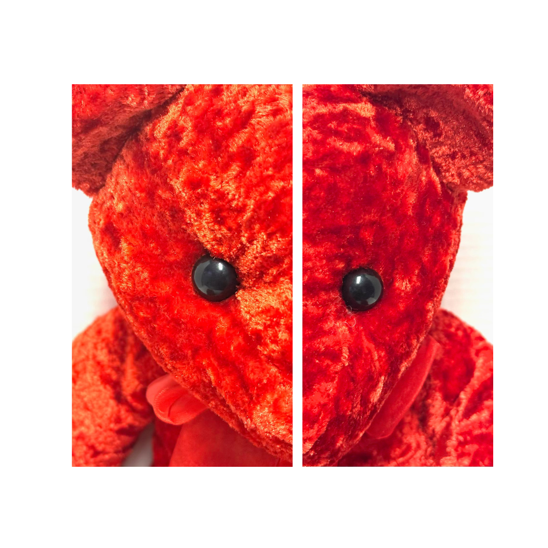 Valentines Day Soft Red Crushed Velvet Stuffed Plush Teddy Bear : Condition : Very Good Pre-Owned ( No Smells / No Stains ) : Dimensions : Height - 18in x Width - 10in : Features : - Attached Red Ribbon - Large Round Plastic Black Eyes - Large Floppy Legs / Arms / Head - Soft Red Velvety Exterior : Thank you for your interest. : Shipping : - Plush will be securely packaged to ensure a damage-free delivery. - Mailed Within 3 Business Days.