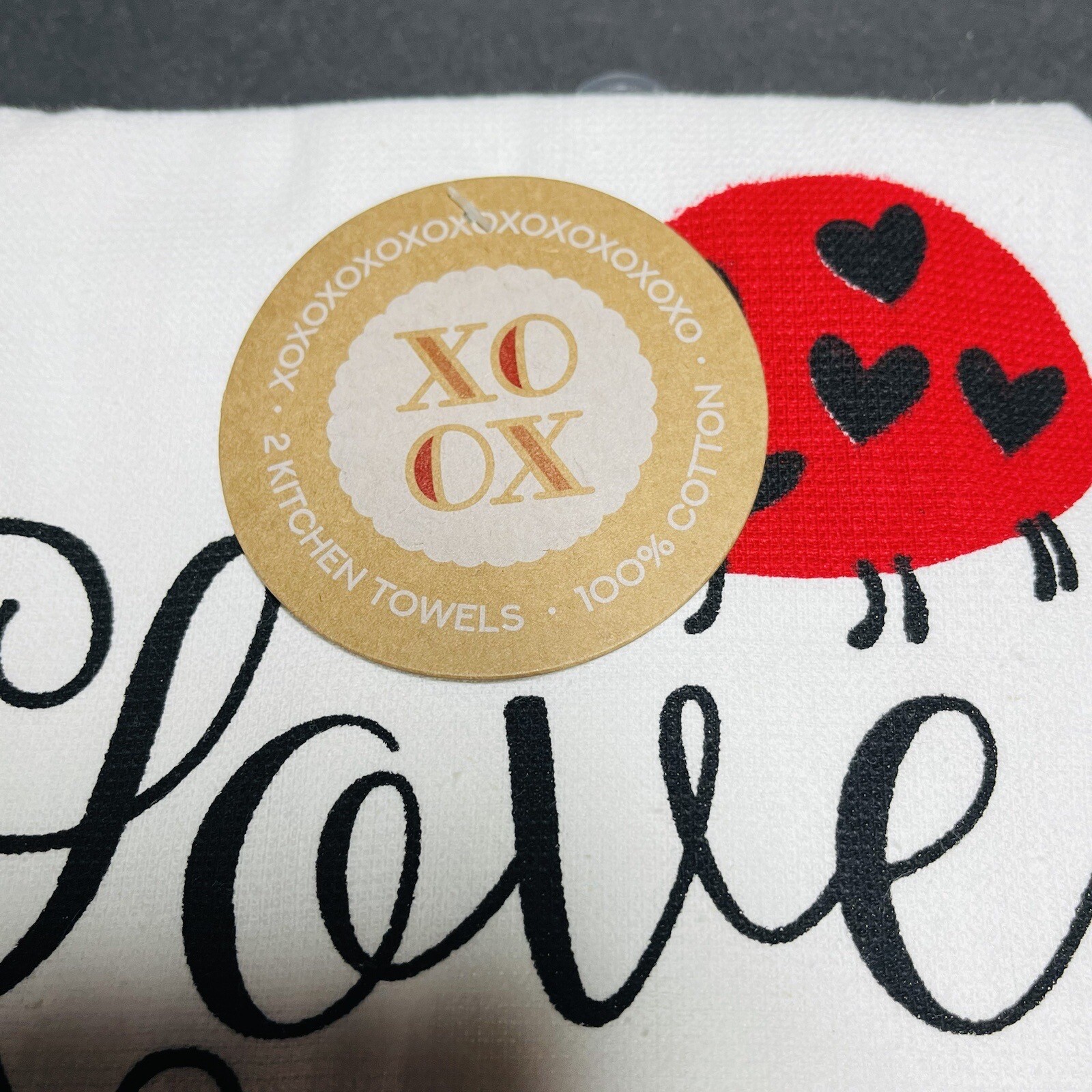 Valentine’s Day 2 Pack Hand Towels Anniversary Love Bugs XOXO Red Decor NEW