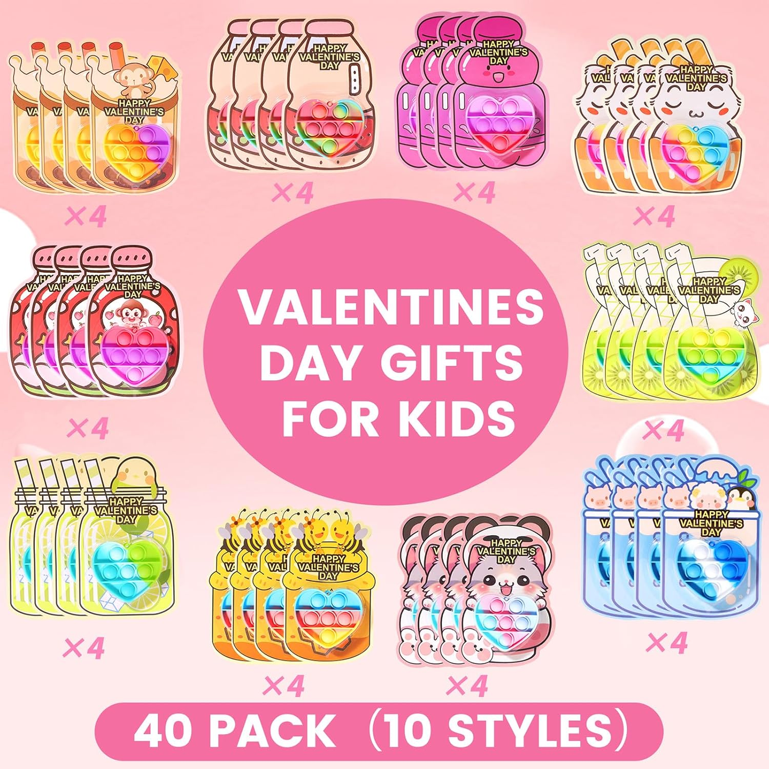 These Valentine’s Day gifts are perfect for kids! The set includes 40 adorable pop-it keychains and matching cards—each color-coordinated for extra fun. Made with safe, non-toxic materials and CPC-certified, parents can relax while kids enjoy the pre-filled heart pop-its. A fantastic, hassle-free way to spread love in the classroom!