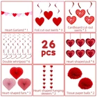 Valentines Day Heart Paper Kit Party Decorations, Red Heart Swirl Hanging Decorations for Wedding Valentines Decor Anniversary Party Supplies 【Super Value Pack】 The Valentine’s Day Decoration 26 Set includes: 1-Heart Garland, 3-Foil cut-out swirls, 3-Cardboard cut-out swirls, 6-Double whirlpool, 6-Heart-shaped pull, 3-Heart-shaped fans, 2-heart-shaped hanging skewers, 2-tissue paper balls. 【Premium Quality】These Valentines decoration is reliable and reusable, are made from quality materials with 3 kind of red colors, lightweight and not easy to deform. A variety of heart shapes and sizes brings an ideal vibe. 【Classic Design】These Valentine's day decorations for parties are designed with heart shape and printed with sweet patterns, coupled with classic red colors, delicate and romantic, which will easily catch the attention of people. 【Easy to DIY】These Valentine’s Day heart decorations are easy to make and decorate. You can enjoy the joy of decoration work in this process. hot red and pink, different colors bring you some romantic and cozy atmosphere to your party. 【Use Widely】These decoration tissue paper set is not only suitable for Valentine's day, but wedding, birthday party, bridal shower or room decor, helpful to happy vibe making for any cheerful festival.