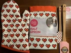Set includes one oven mitt, one half-apron, and set of two spatulas(one small and one large). I will ship within one business day of payment via USPS.