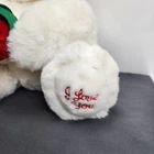 Valentines Day "I Love You" White Teddy Bear Holding Rose Stuffed 15" Tall Plush * MATERIAL: Polyester Fibers / Plastic / Felt * SIZE: 15" x 13" * AGE LEVEL: 5 and Up * FEATURES: "I Love You" Embroidered on both feet holding single rose * CONDITION: Very Soft & Cuddly (See Images for Specifics) Pre-Owned / Used: A product that has been used previously. View our listing for full details in our description and check out our photos provided. If there are any imperfections, it will be noted in the description and/or within the provided photos. We appreciate you looking at our listing. Before placing an order, feel free to ask any questions you may have about this item. Upon receiving your order, if you are not satisfied with your order, please contact us and we will address any issue.