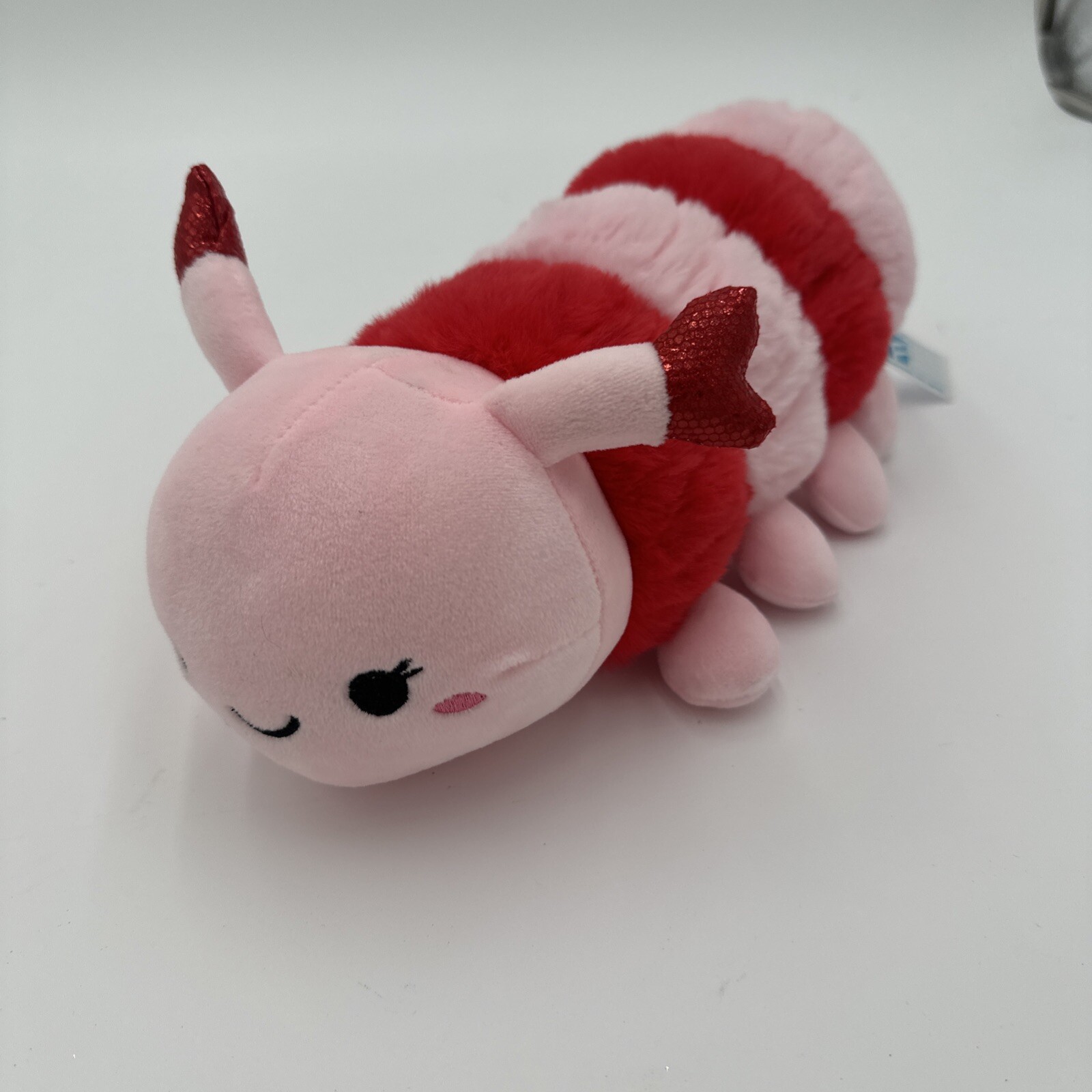 Celebrate Valentine's Day with a whimsical touch of nature with our Valentines Love Caterpillar. Dressed in a charming pink hue, this plush toy spans a cozy size of approximately 12 inches, making it a perfect companion for cuddle time or a heartfelt gift for someone special. The design features adorable heart-shaped antennae, adding a romantic twist to this lovable caterpillar. Whether it's for a child or a child at heart, this stuffed animal is sure to bring a smile and a touch of whimsy to any space. From playtime to display, it's a delightful addition to any collection of stuffed animals.