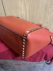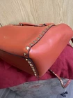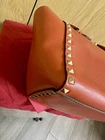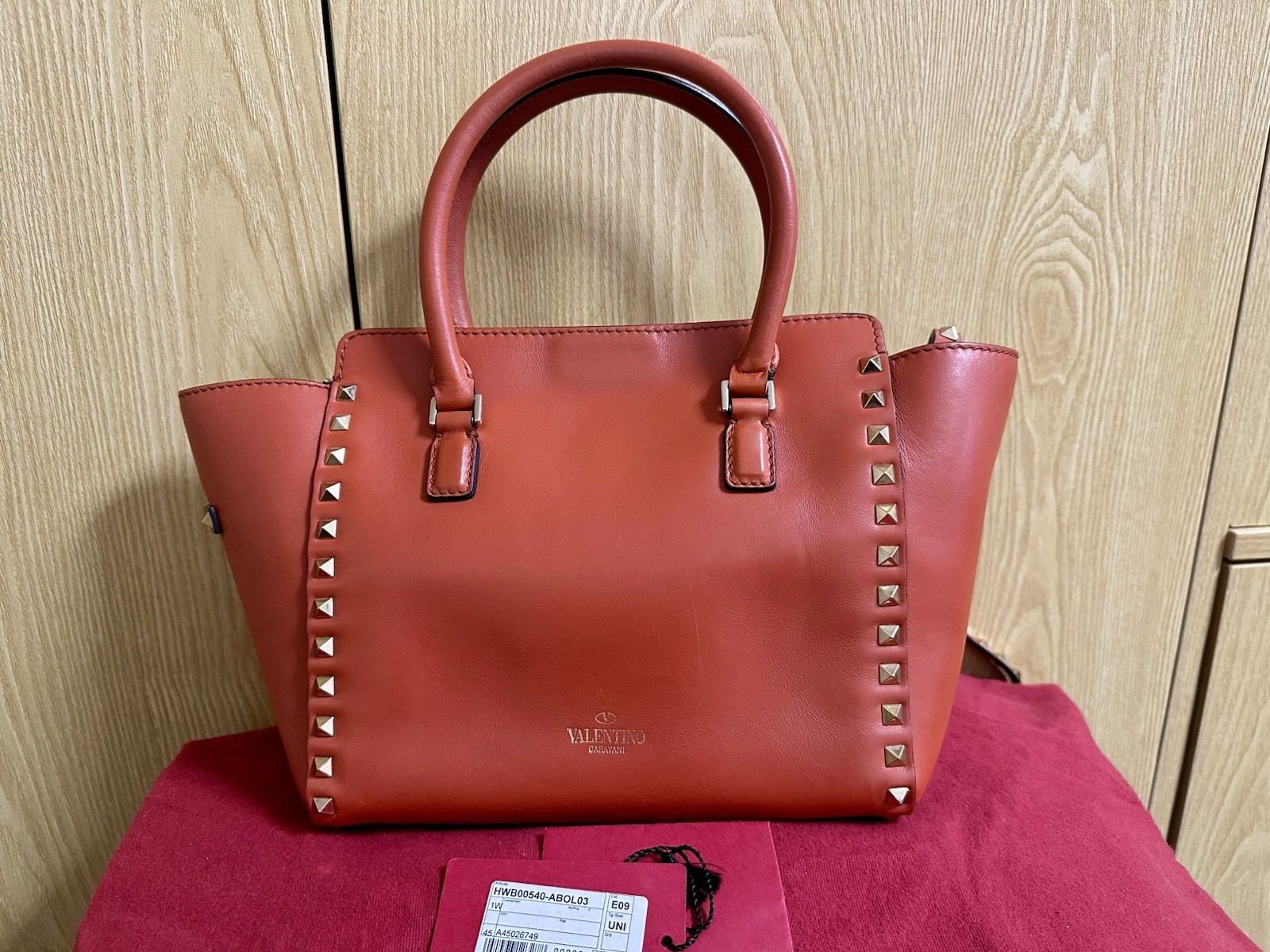 Valentino Garavani Burgundy Rockstud Studded Bag. Removable shoulder strap. Zipper closure. Came with cards and dust bag. Condition: overall in used very good condition. There are few scratches. Slightly worn. Hardwares has a bit tarnished. Interior, clean and no odour. Please see the photos. Measurement: W25, H20, D13 approximately.