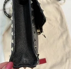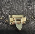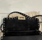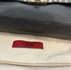 Valentino Garavani the pebbled lamb leather shoulder bag with signature Rockstud trim is lightweight and great for a night out or concert Detachable shoulder strap; 23" drop Can be worn over the shoulder or across the body Flap top with flip-lock. Hook closure Interior, one slip pocket. Leather lining. 5.9"H x 8.8"W x 2.3"D.