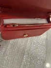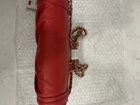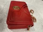 The Valentino Orlandi Small Crossbody Rose Bag is a luxurious designer handbag crafted in Italy with faux leather and leather materials. This stylish bag features a solid red exterior with gold hardware accents and studded details, adding a touch of edginess to its overall design. The bag has a small size with a zip closure and a crossbody strap handle style, making it convenient and fashionable for daily use. With an adjustable strap and detachable strap accessory, this designer bag offers both versatility and high-end style for women who appreciate quality craftsmanship.