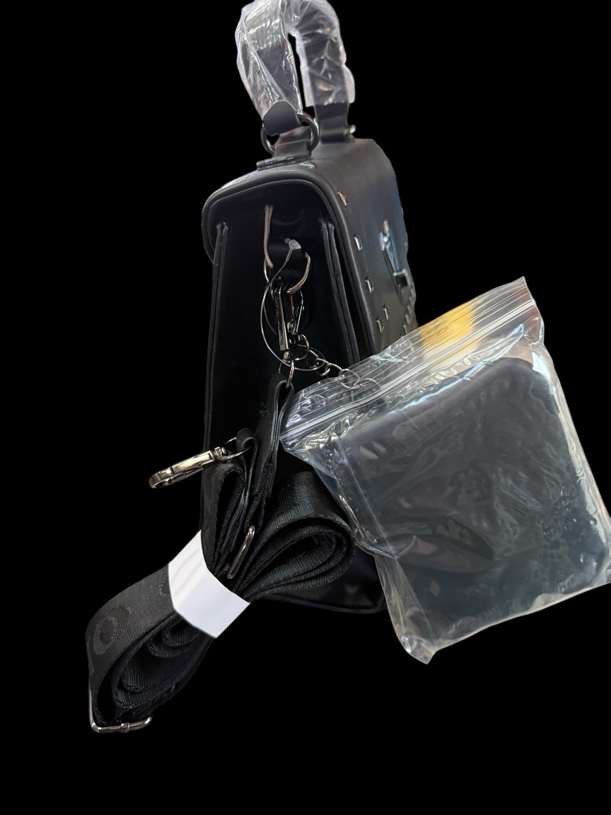 The Valentino Orlandi Satchel Top Handle Logo Studded Bag is a stylish and sophisticated accessory for women. Made from vegan leather with studded accents, this black bag features the brand's signature logo pattern. The satchel/top handle style adds a touch of elegance to any outfit, making it a versatile and fashionable choice for everyday use. Perfect for carrying essentials in a chic and timeless way, this bag is a must-have for women looking to add a touch of luxury to their wardrobe.