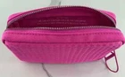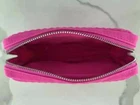 Limited edition Valentino Beauty Pouch -Approximate dimensions: 6" long x 3.75" tall x 1.5" deep -hot pink color body - studded texture - 100% polyester -hot pink color lining -zip closure - hot pink zip pull tab with "V" design -Made exclusively to promote the Valentino Beauty line -New