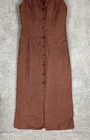 This beautiful Valerie Stevens maxi dress is a must-have for any vintage bohemian-inspired wardrobe. With its pure linen material and button-front design, this dress is both stylish and comfortable. The brown color and 1990s decade make it a unique vintage piece that is sure to turn heads. Perfect for a day dress occasion, this dress is available in size 4 and is an original piece. Its regular size type and women's vintage clothing category make it a great addition to any fashion-forward wardrobe. Don't miss out on the opportunity to add this stunning dress to your collection. An instant classic! Measurements are in photos and approximate.