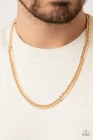 Valiant Victor - Gold - Paparazzi Accessories Men's Necklace Item ID Number: 3103 Color Gold Description Featuring diamond-cut textures on one side and a smooth finish on the other, a glistening gold curb chain drapes below the collar for a reversible versatile look. Features an adjustable clasp closure. Sold as one individual necklace. Get The Complete Look! Bracelet: "Very Valiant - Gold" (Sold Separately) Additional Images
