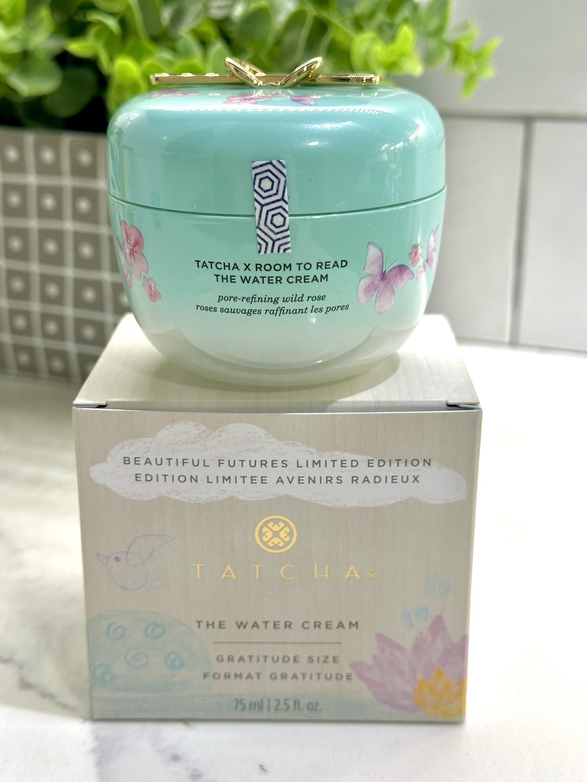 The Tatcha Water Cream Oil-Free, Pore Minimizing Moisturizer Value Size is a luxurious moisturizer designed for all skin types. With ingredients like water and glycerin, this white cream provides soothing hydration without any greasy feel, making it perfect for daily use. Infused with Japanese Leopard Lily and Japanese Wild Rose, this vegan product also contains Tatcha's signature Hadasei-3 formula. With a volume of 2.5 fl oz, this value size bottle ensures you have an ample supply of this high-quality moisturizer for your skincare routine.