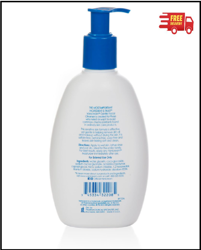 Gentle cleansing: Effective, yet gentle to sensitive skin, this face cleanser helps remove dirt, oil and makeup without drying the skin; ideal for daily use Ingredients for sensitive skin: Formulated to avoid common chemical irritants and harsh cleansing agents; betaine-free, gluten-free, soap-free, and botanical extract-free Soothing formula: Free of sulfates, dyes, fragrance, masking fragrance, lanolin, parabens and formaldehyde releasers Dermatologist tested: This non-comedogenic cleanser won’t clog pores; awarded the Seal of Acceptance from the National Eczema Association Please note: There are no fragrances or masking fragrances in Vanicream products, but there may be a slightly different aroma to each batch; packaging may vary