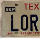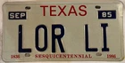 You are bidding on a vintage 1985 Texas embossed Sesquicentennial style vanity “LOR LI“ license plate (made of heavy steel) previously issued to a Texas motorist at an extra fee in the amount of $70.00 for a personalized tag (in addition to regular registration charges) by the Texas DMV. The license plate listed is for collecting/display purposes only, and fully complies with all eBay listing policies.It is no longer valid and is at least three years old. It is sold as a collectible, hobby or souvenir item and never for display on any type of motor vehicle. All buyers must agree to not misrepresent their intent in making this purchase and further agree to not misuse this license plate in any way that will violate any state, federal or local laws, statutes and/or ordinances. International bidders welcome - $8.95 shipping for USA - WE ARE HAPPY TO COMBINE auctions to save you postage so long as they are paid for in one payment, and will reduce postage costs for auctions over 3 plates if we can send more economical. Please include item numbers and pay for all orders within 20 days, as it is difficult and time consuming to pull up long past auctions. I have an almost complete FIRST NAME PERSONALIZED & TEXAS OPTIONAL pl8 collection for sale. Feel free to ask for other designs. Estimated delivery dates - include seller's handling time, and will depend on shipping service selected and receipt of cleared payment. Delivery times may vary, especially during peak periods.