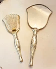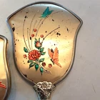 This vintage hair brush and mirror lot is a charmingly rustic addition to any vanity or collection. The butterfly design on the brush and the nylon bristles make it a unique item set. Made in the United States, this lot is a nice for collectors and anyone who appreciates vintage beauty items. AS IS Vintage Condition, SEE ALL PHOTOS There are rust spots on the gold plate of the set on the left, the one on the right has moisture damage and wear on the handle. Combined Shipping Discounts Available. Please use the cart button feature in the listings to shop my store and combine your purchases.