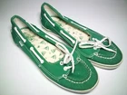 Step out in style with these Vans Abby Women's Green Canvas Moc Loafer Flats. These boat slip-on shoes are perfect for any casual occasion. The textile upper material combined with the canvas fabric type offers durability and comfort. The slip-on closure provides ease of wear, making them perfect for busy days. The shoes come in a size 5.5 and are designed for women. The stylish green color and loafer style make them a great addition to any wardrobe. Get these Vans Abby Women's Green Canvas Moc Loafer Flats today and step up your fashion game! W