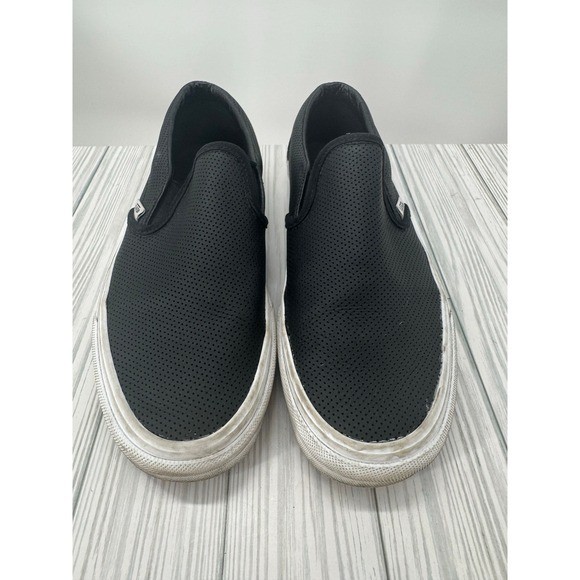 Step out in style with these chic Vans Asher slip-on loafers! Featuring a sleek black leather upper with a stylish perforated design, these shoes offer both comfort and a touch of edgy sophistication. Perfect for everyday wear, they're a versatile addition to any wardrobe. Features: - Brand: Vans - Style: Slip-on Loafer - Color: Black - Material: Leather - Design: Perforated - Size: Women's 9 - Condition: Please refer to the listing for details - Perfect for casual outings