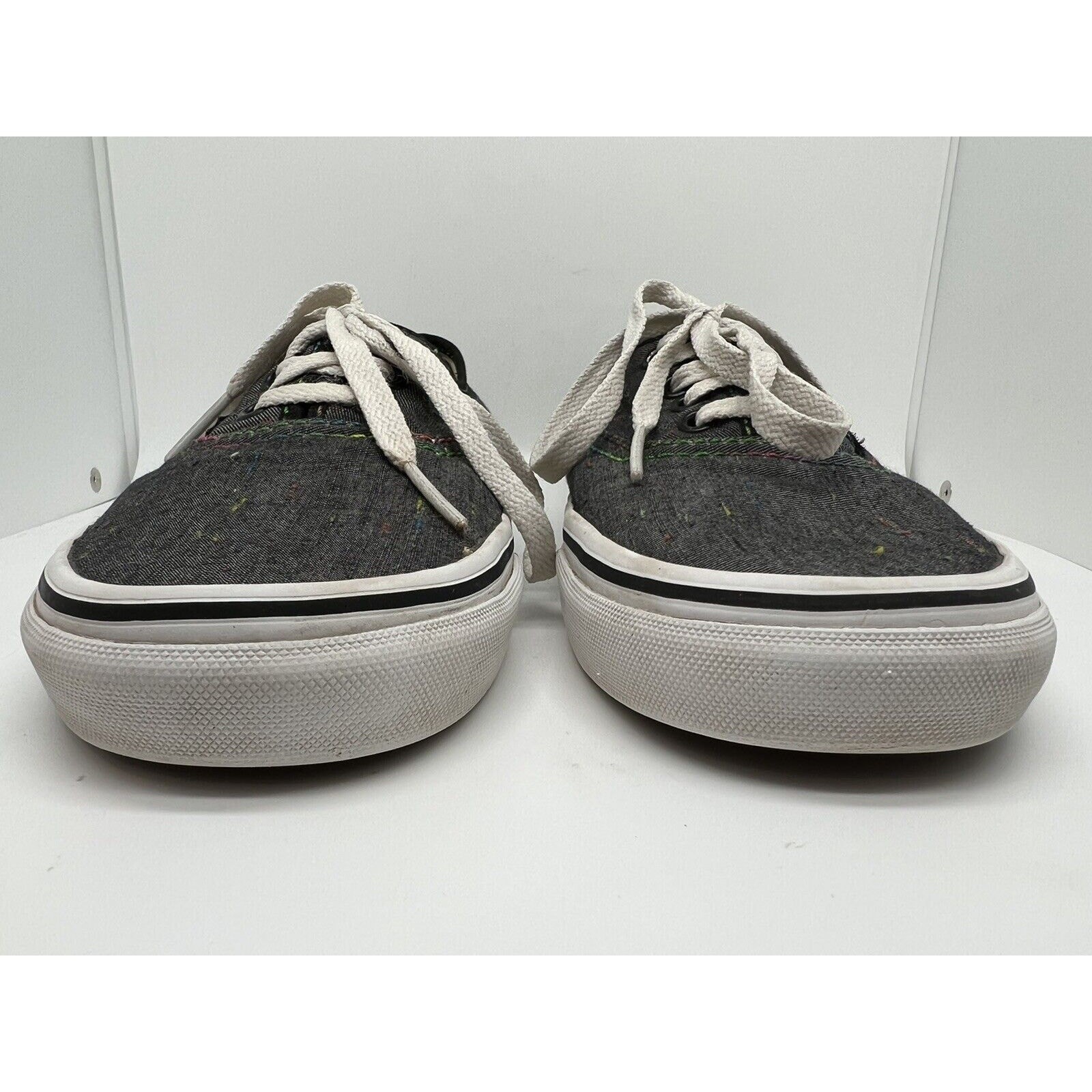 Vans Authentic Gray with Rainbow Weave Mens 9.0 or Womens 10.5. Excellent Pre-Owned Condition. No stains, rips or tears found. I only sell items that appear to have little or no wear. I photograph any defects found. Item measurements are pictured. I do not accept returns because I try to leave no question as to the condition of the product pictured. If I do miss a defect or something is damaged that I did not catch, please contact me and I will make it right. If you need any different measurements, please let me know. Please check my other listings for more great items. Please follow me! More great items are added weekly. Thanks for looking!