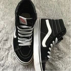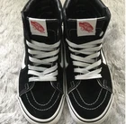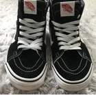 These are Vans Old School sneakers in a high top style, size 5, featuring a black and white color scheme. They are part of the VANS Sk8-Hi product line, suitable for school and athletic activities. The sneakers are designed with a skater style code and are unisex adults. These are pre owned but have only been worn a handful of times. The souls are an excellent condition!