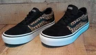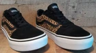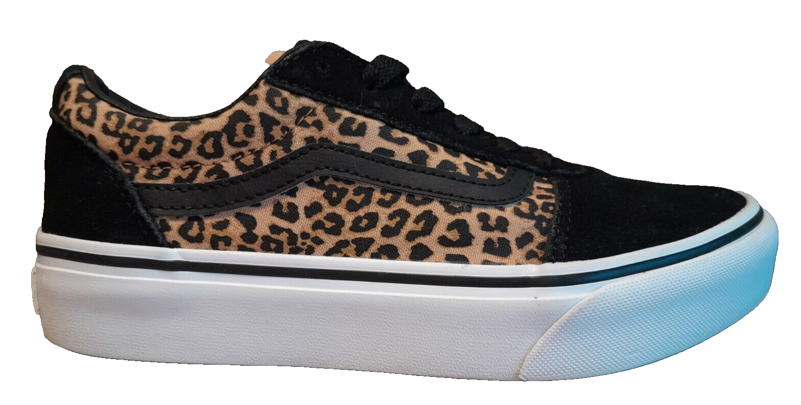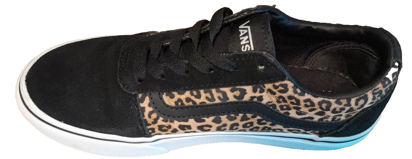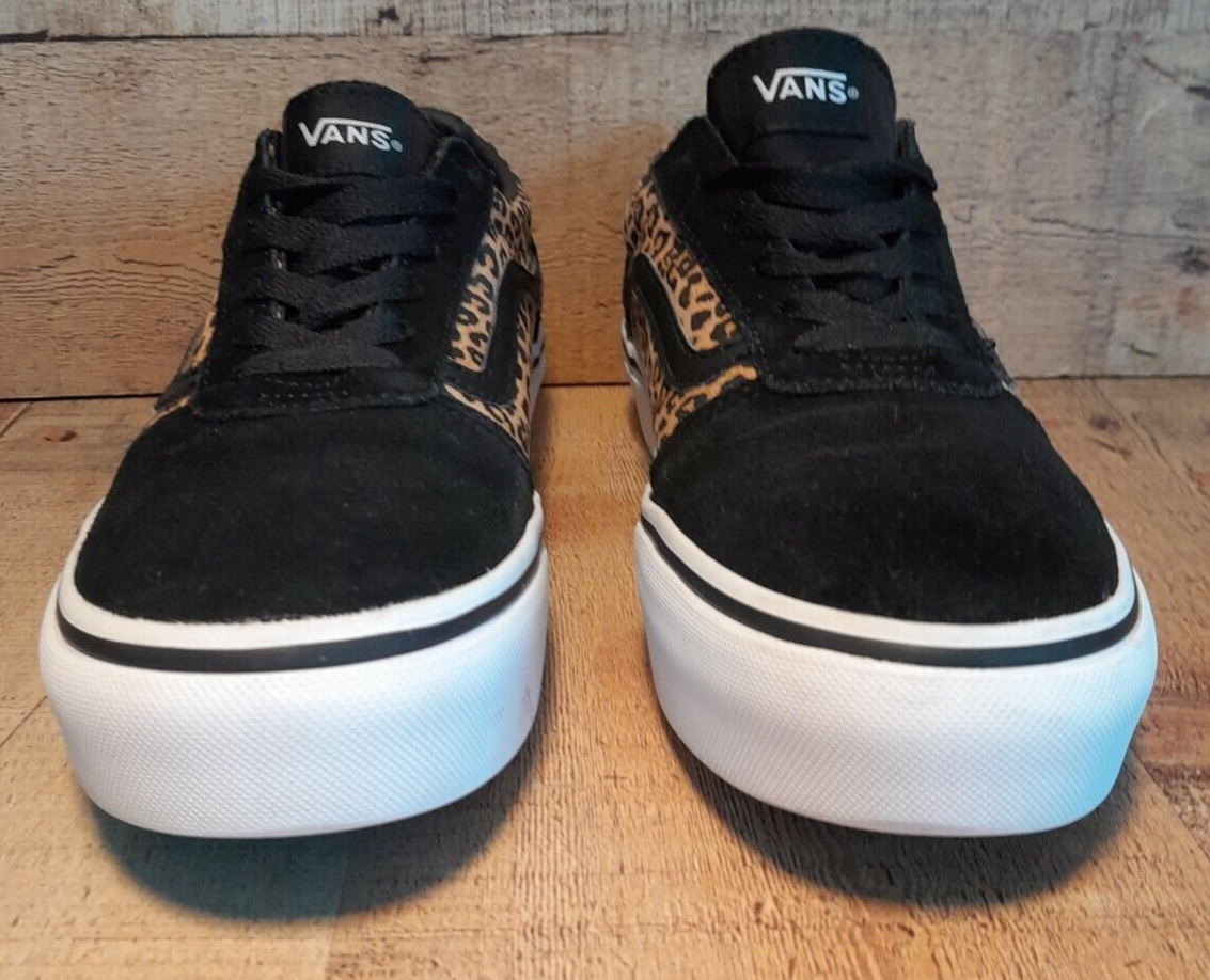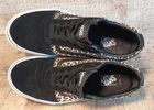 Step out in style with these Vans Old Skool shoes. Perfect for casual occasions, these sneakers feature a stylish leopard print pattern that adds a pop of color to any outfit. The suede upper material provides comfort and the lace-up closure ensures a secure fit. The shoes come in a US size 5 and UK size 4, with an EU size of 36.5. The rubber outsole material is durable and makes the shoes suitable for walking, beach activities, golf, and driving. The shoes also feature a foam insole material and canvas lining material to keep your feet comfortable throughout the day. This Vans Old Skool model is not vintage and has not been customized, with no signed feature to it. Get your hands on these colorful, comfortable, and stylish Vans Old Skool shoes today!