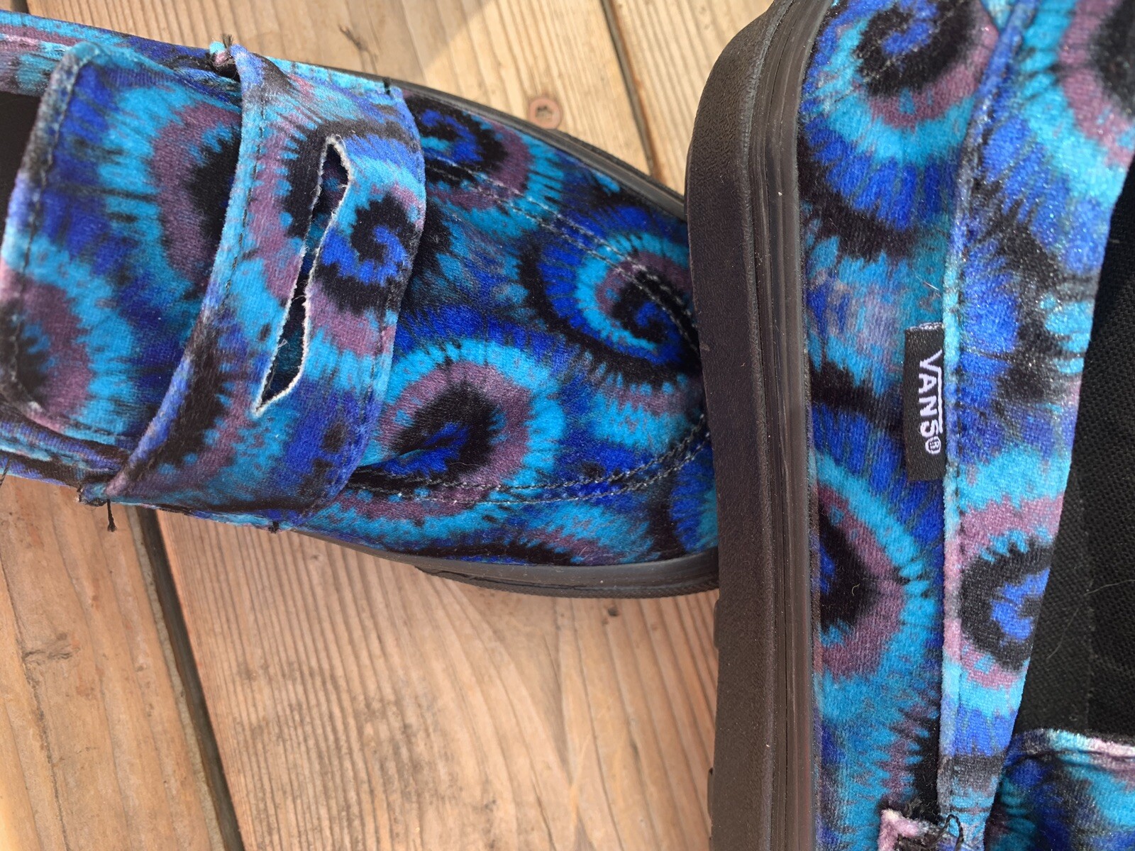 Vans Blue Tie-dye Suede Penny Loafer style 53 Mens 9. Buy this rare suede loafer style shoe...can be casual or dressed up for those fancy occasions. Shipped with USPS Priority Mail. Brand New.